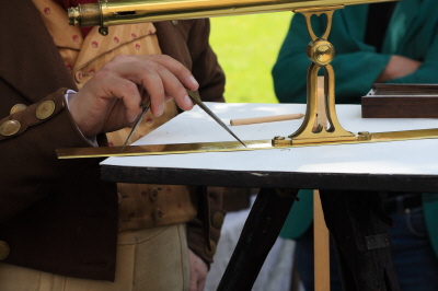 einer gemessenen Entfernung mit Stechzirkel auf dem Transversalmaßstab der Kippregel, 1 Zoll = 200 Ruthen.