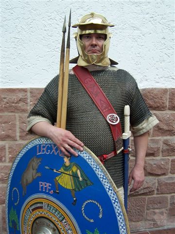 Vollrekonstruktion eines typischen Angehörigen des römischen Heeres um 260 n.Chr. nach archäologischen