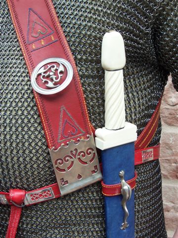 Balteus mit Siberbeschlägen und Stickereien nach Funden aus Dänemark, Sparta mit Knochengriff